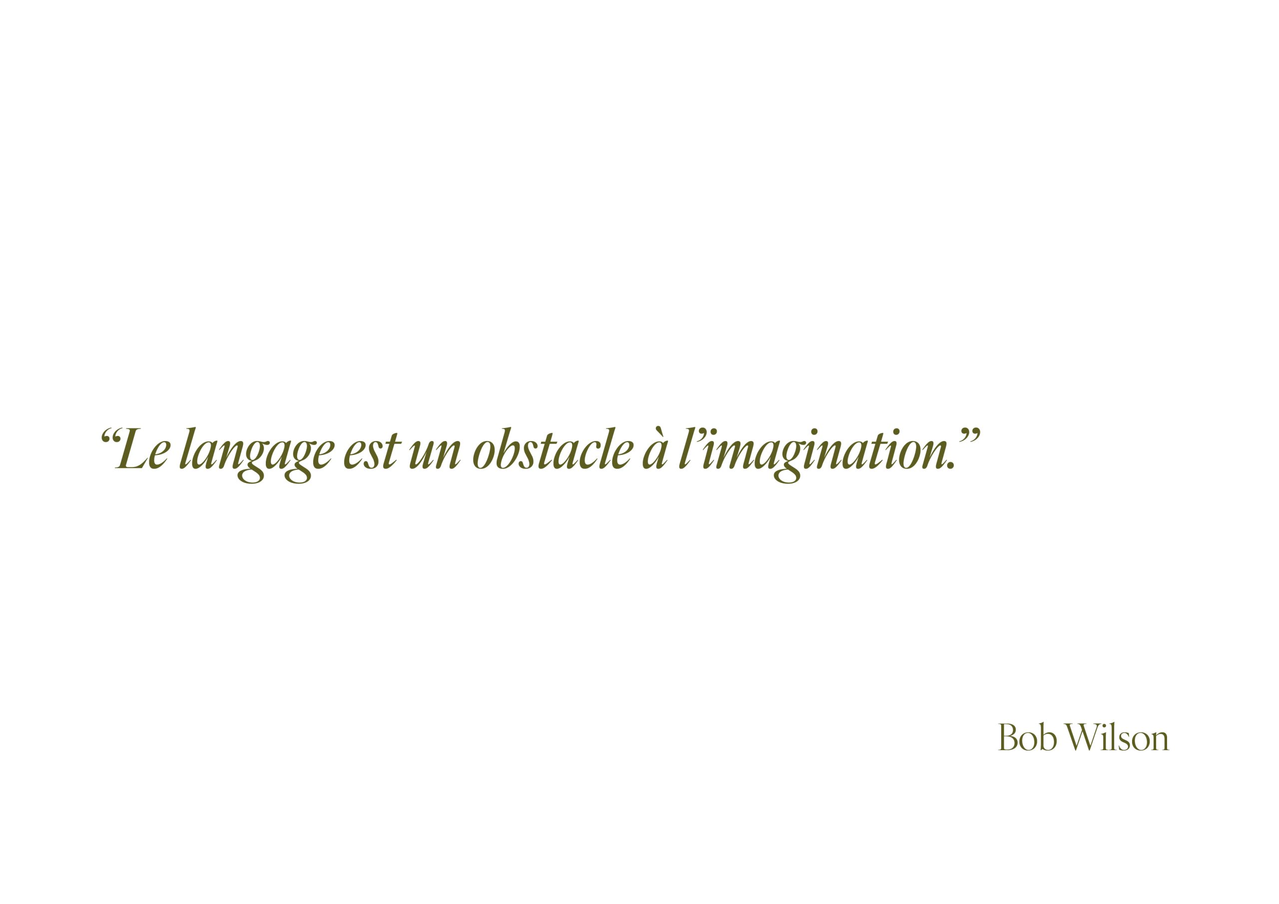 Robert Wilson (né en 1941), de son nom complet, est un metteur en scène de théâtre expérimental et plasticien américain. Son travail artistique se distingue par ses scénographies innovantes et ses jeux d’éclairage. À la fin des années 1960, il s’impose comme l’un des chefs de file du théâtre d’avant-garde new-yorkais. Son œuvre Le Regard du sourd, réalisée en 1970, le propulse sur la scène internationale. Par la suite, il fonde le Watermill Center, un « laboratoire de performance » situé dans l’East End de Long Island, à New York, où il collabore régulièrement avec des compagnies d’opéra, de théâtre, ainsi qu’avec des festivals culturels. Il a également travaillé avec divers artistes de renom, tels que Philip Glass, Isabelle Huppert et Marina Abramović.