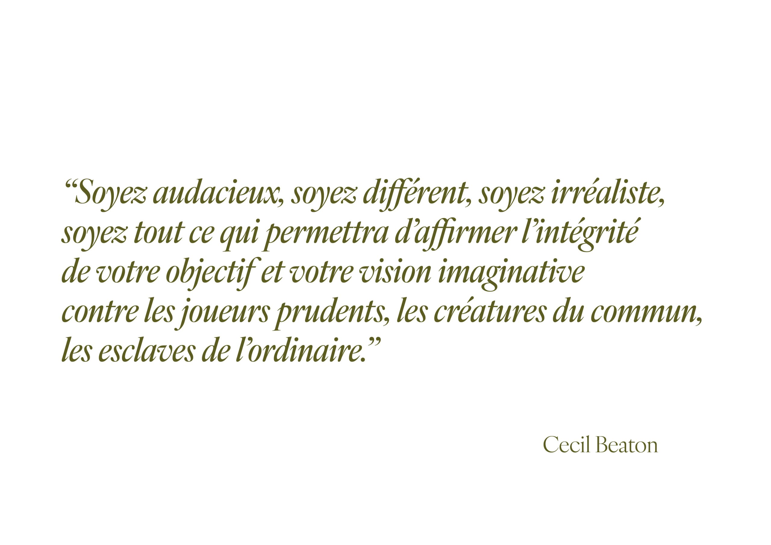 Photographe, décorateur et costumier britannique, Cecil Beaton (né en 1904) est célèbre pour ses portraits élégants de personnalités du monde artistique, politique et mondain. Il a travaillé pour Vogue et Vanity Fair et immortalisé des figures comme la reine Élisabeth II, Marilyn Monroe ou Picasso. Parallèlement, il a marqué le théâtre et le cinéma en créant des décors et costumes primés, notamment pour My Fair Lady et Gigi.