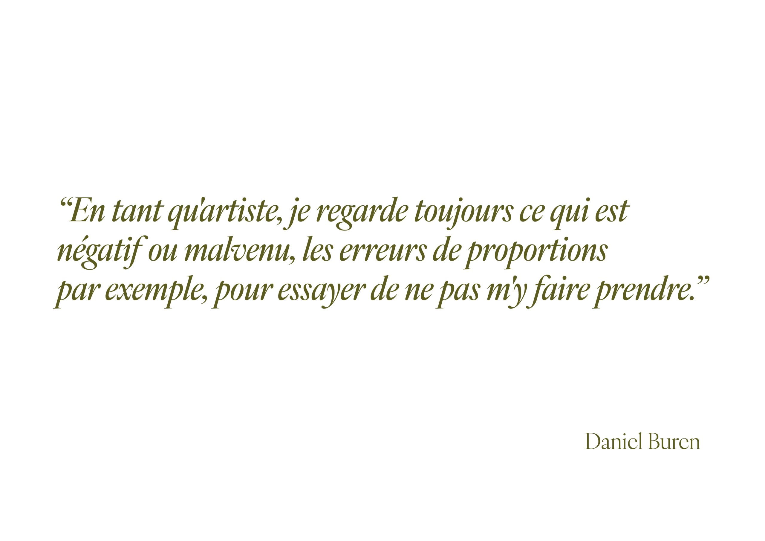Dans les années 1970, Buren étend ses interventions rayées à une multitude de supports, des portes aux escaliers, en passant par les gilets de gardiens de musée, affirmant ainsi l’omniprésence de son art dans l’espace public et l’architecture.