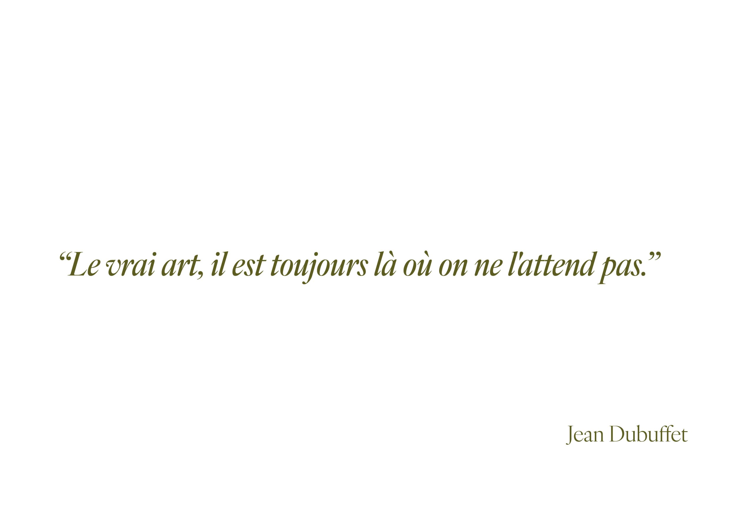 Artiste pluridisciplinaire, Jean Dubuffet (1901-1985) aspire à un art affranchi de l' »asphyxiante culture » qu’il critique pour son caractère répressif. Il se tourne alors vers l’art brut, adoptant un trait maladroit et un dessin qualifié de naïf et enfantin. À travers ses œuvres matiéristes et informelles, il transgresse toutes les normes artistiques et esthétiques établies, renouvelant ainsi le vocabulaire figuratif. De la décennie 1950 à 1980, il demeure fidèle à une liberté absolue dans sa création.