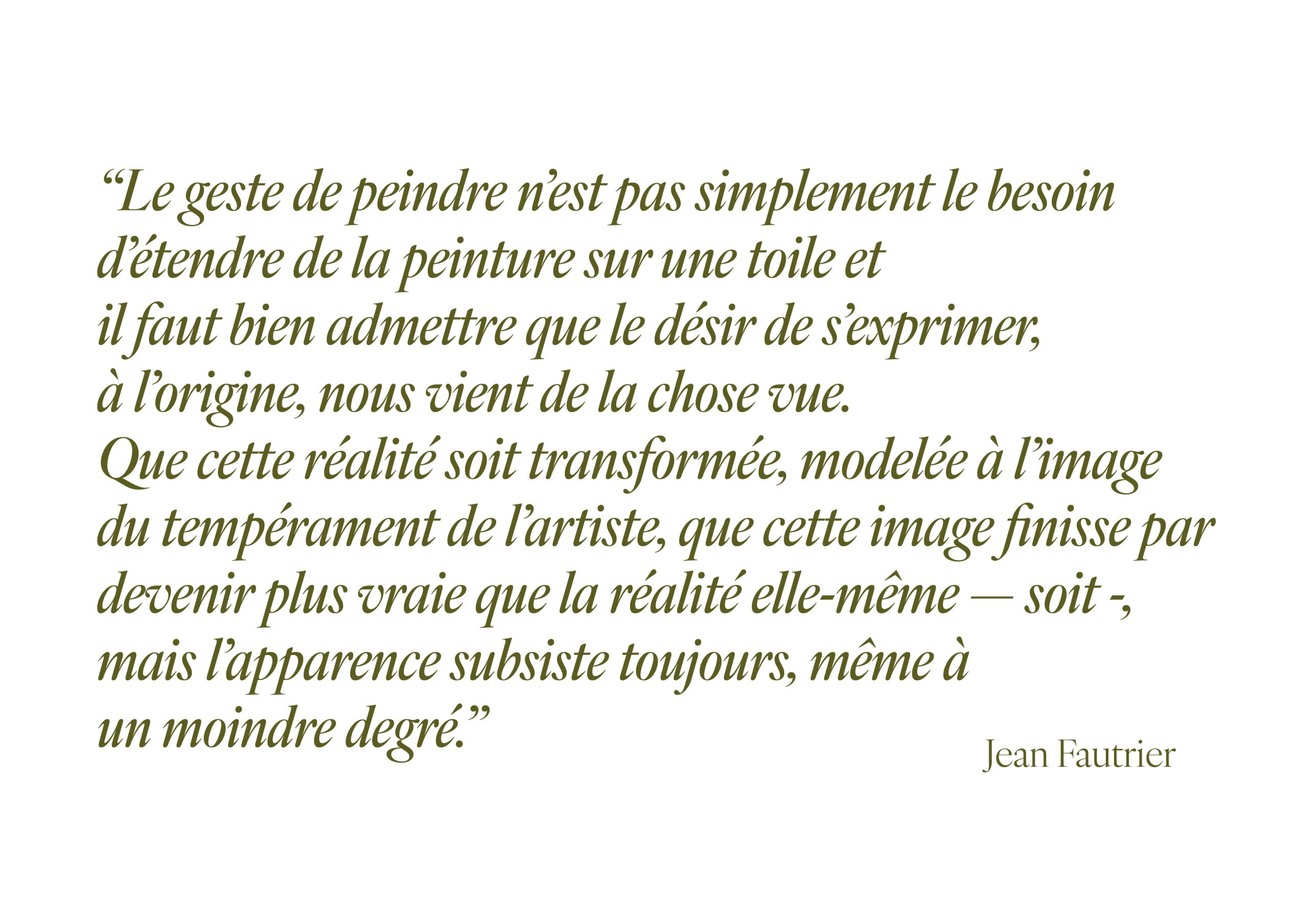 Peintre, graveur et sculpteur français, Jean Fautrier (1898-1964) débute sa carrière artistique en 1920. Dans un premier temps, son travail reste figuratif, se concentrant sur des natures mortes, des paysages et des nus. Cependant, à la suite de la crise économique de 1930, il est contraint de quitter Paris et s’installe dans les Alpes, où il vivra plusieurs années et donnera des cours de ski.