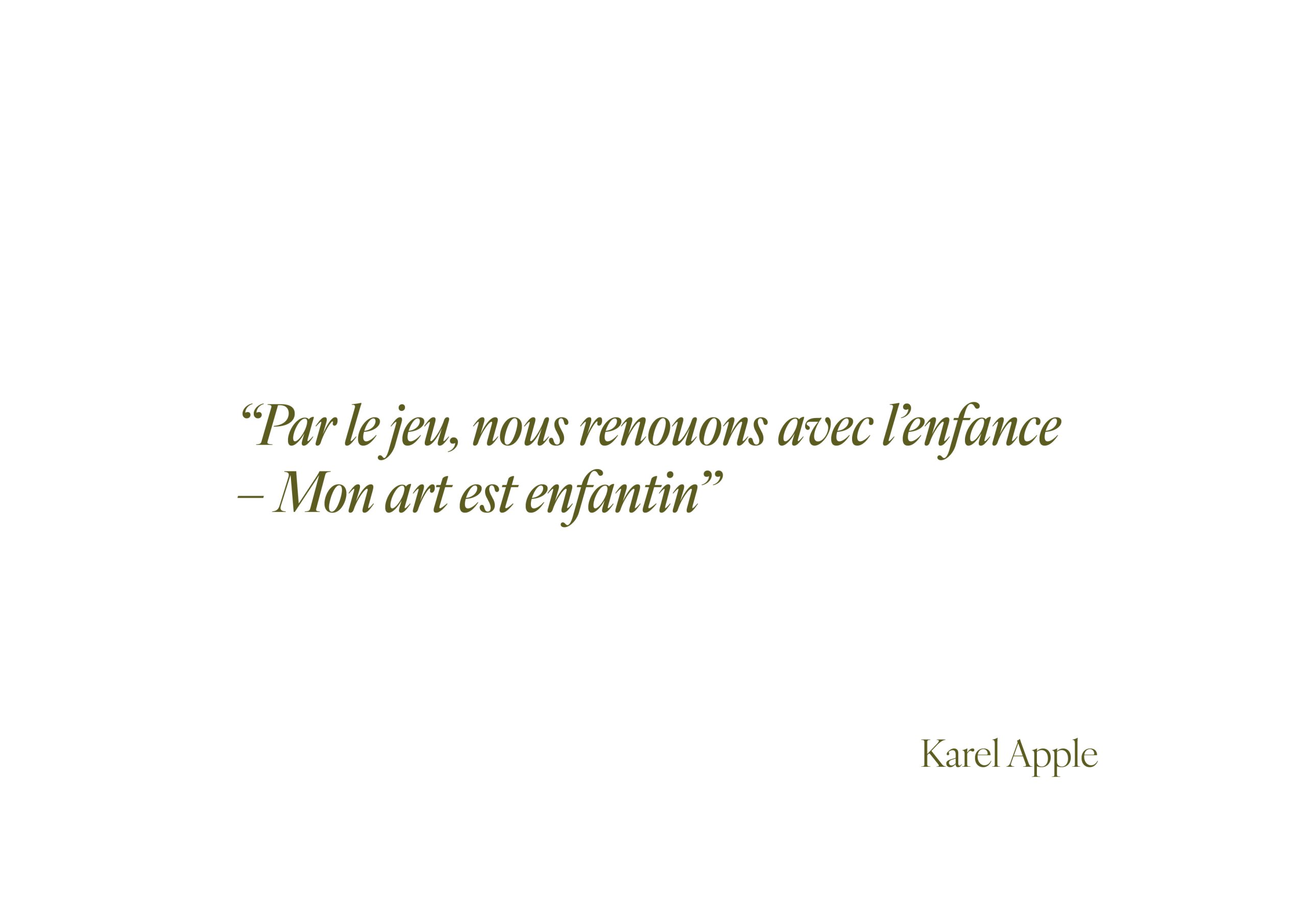 Peintre et sculpteur néerlandais, Karel Appel (1921-2006) est l’un des fondateurs du groupe CoBrA. Ce mouvement s’opposait à la tendance de l’abstraction froide et géométrique en Europe, celui-ci s’inspire en partielle l’expressionnisme abstrait américain. C’est en 1957 que l’artiste se fait connaitre sur la scène internationale avec des expositions à Paris, New York et ailleurs. Ses œuvres sont caractérisées par une gestuelle libre et énergique avec une peinture appliquée en couche épaisse.