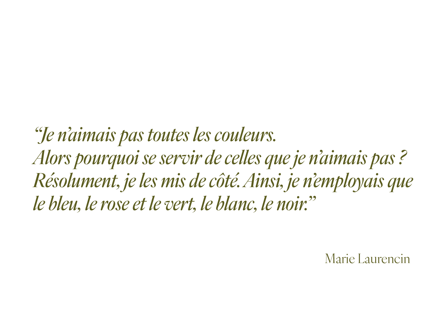Peintre, graveuse et poétesse, Marie Laurencin (1883-1956) est une artiste française majeure du XXᵉ siècle. Née à Paris, elle commence par la peinture sur porcelaine à l’École de Sèvres, puis étudie à l’Académie Humbert où elle rencontre Georges Braque et Francis Picabia. Elle se lie également d’amitié avec Pablo Picasso et entretient une relation significative avec le poète Guillaume Apollinaire, qui influence son univers artistique.