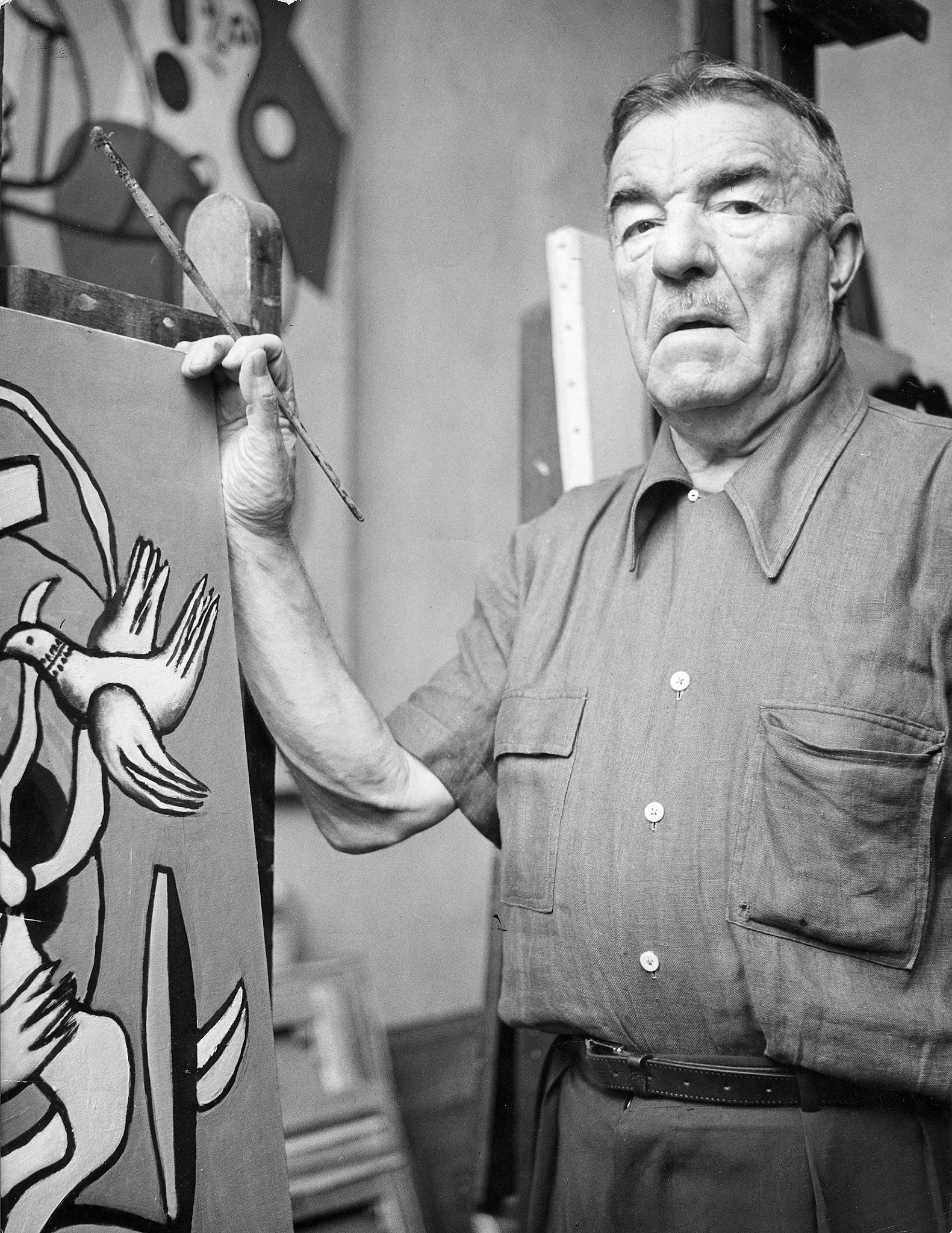 Peintre et plasticien français, Fernand Léger (1881-1955) dont l’œuvre a profondément marqué l’art moderne du XXe siècle en s’inspirant de l’esthétique industrielle. Initialement associé au mouvement cubiste, il a développé un style personnel fondé sur le contraste des formes géométriques et la simplification des volumes, souvent qualifié de « tubisme ». Marqué par son expérience de la Première Guerre mondiale, il a intégré des éléments de la vie urbaine et mécanique dans ses compositions pour célébrer le progrès technique. Artiste engagé, il a élargi sa pratique à la peinture murale, au vitrail et à la céramique afin de rendre l’art accessible au plus grand nombre. Son travail se caractérise par l’utilisation de couleurs primaires et une recherche constante de lisibilité visuelle, influençant durablement les courants de l’art abstrait et du Pop Art.