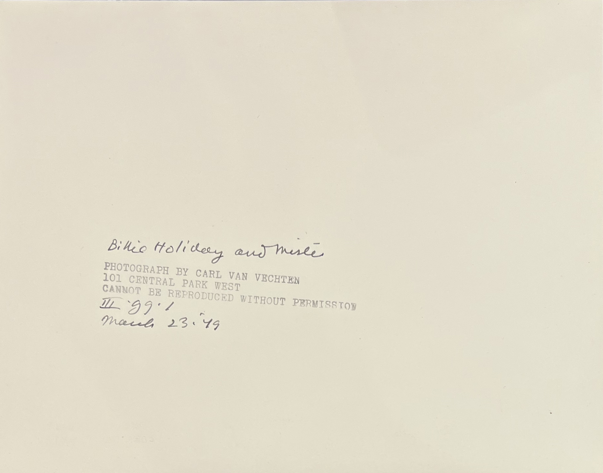 Billie Holiday et Mister, 1949